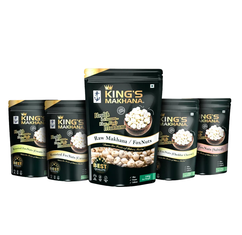 All King’s Makhana products are roasted to perfection for a delicious, healthy, and ready-to-eat snack.